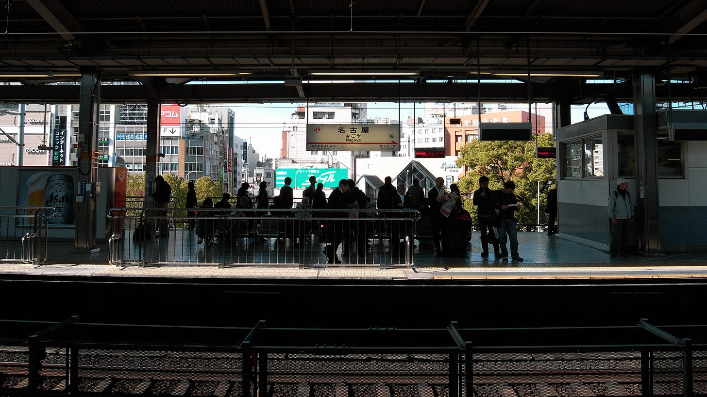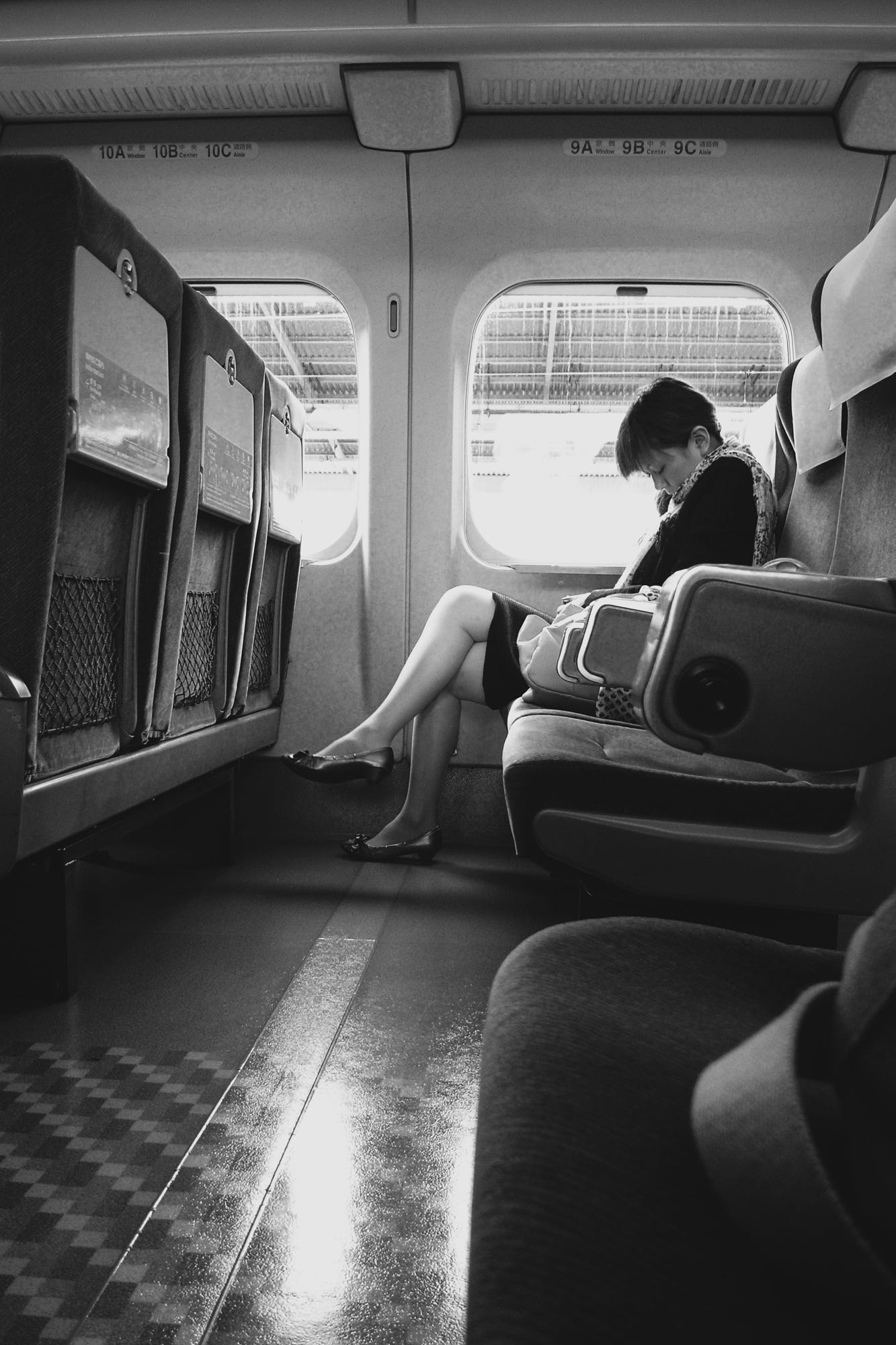 Tourists eat lunch and enjoy conversation on board, but business people using the Shinkansen look tired.
