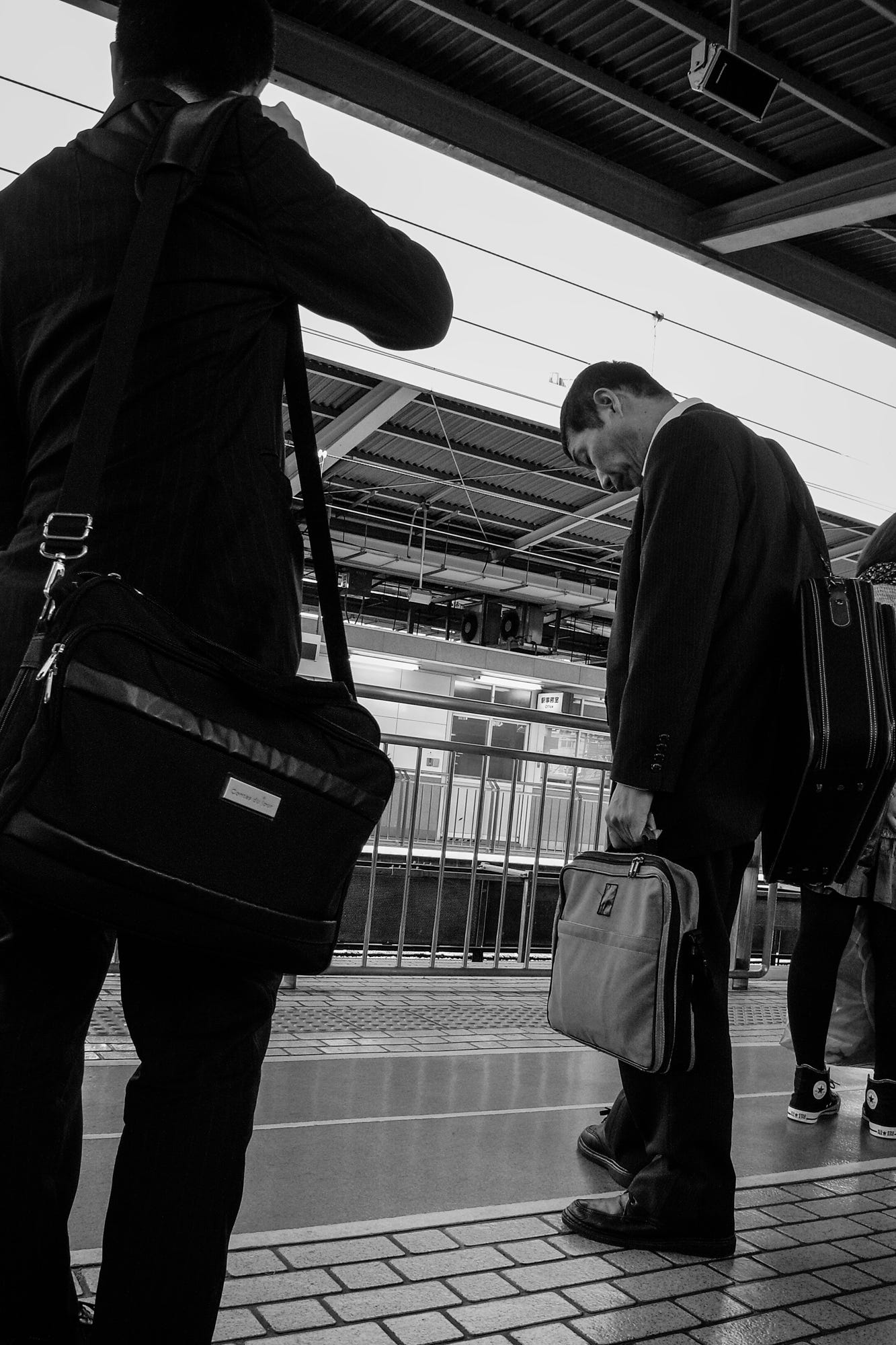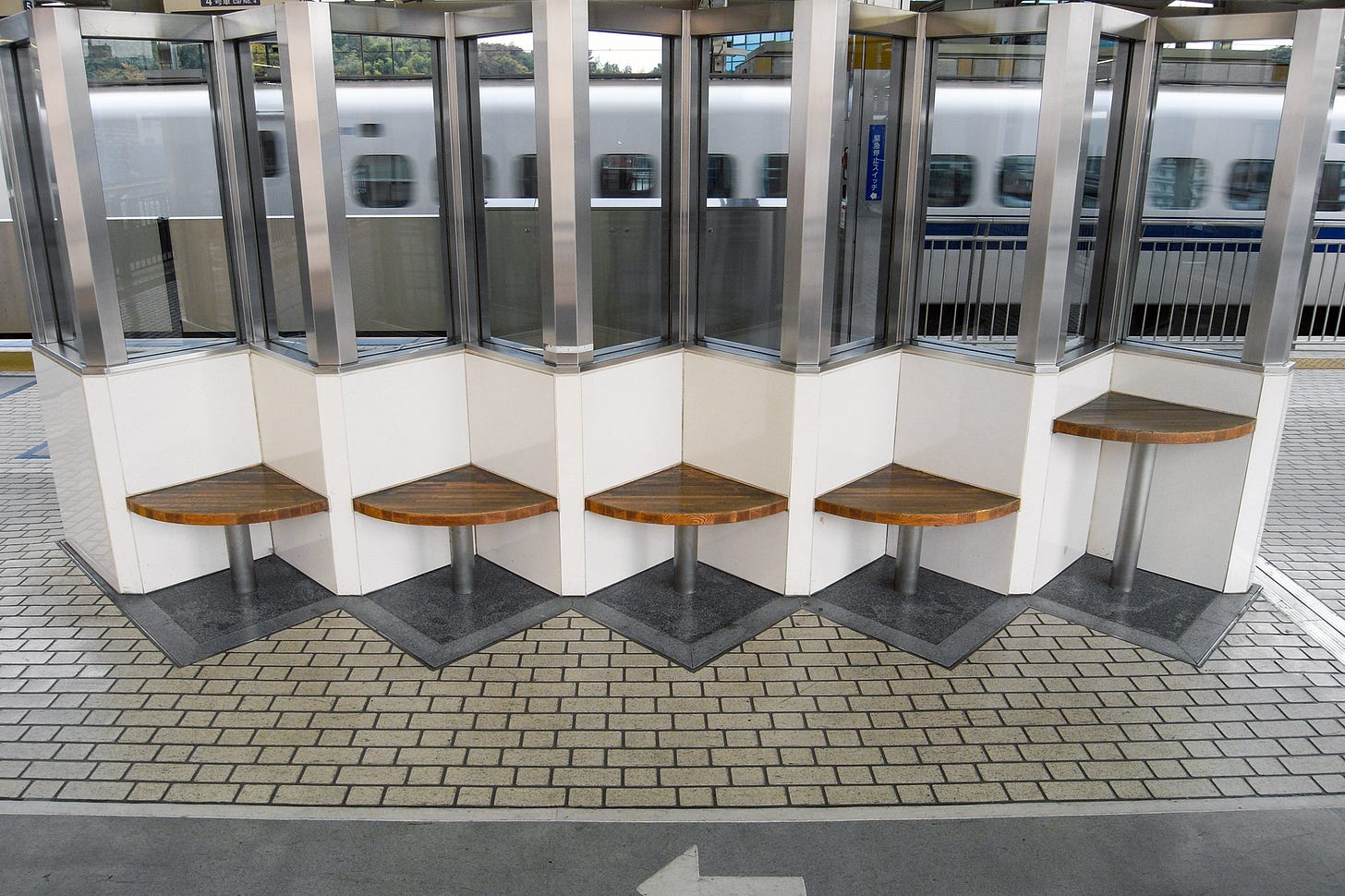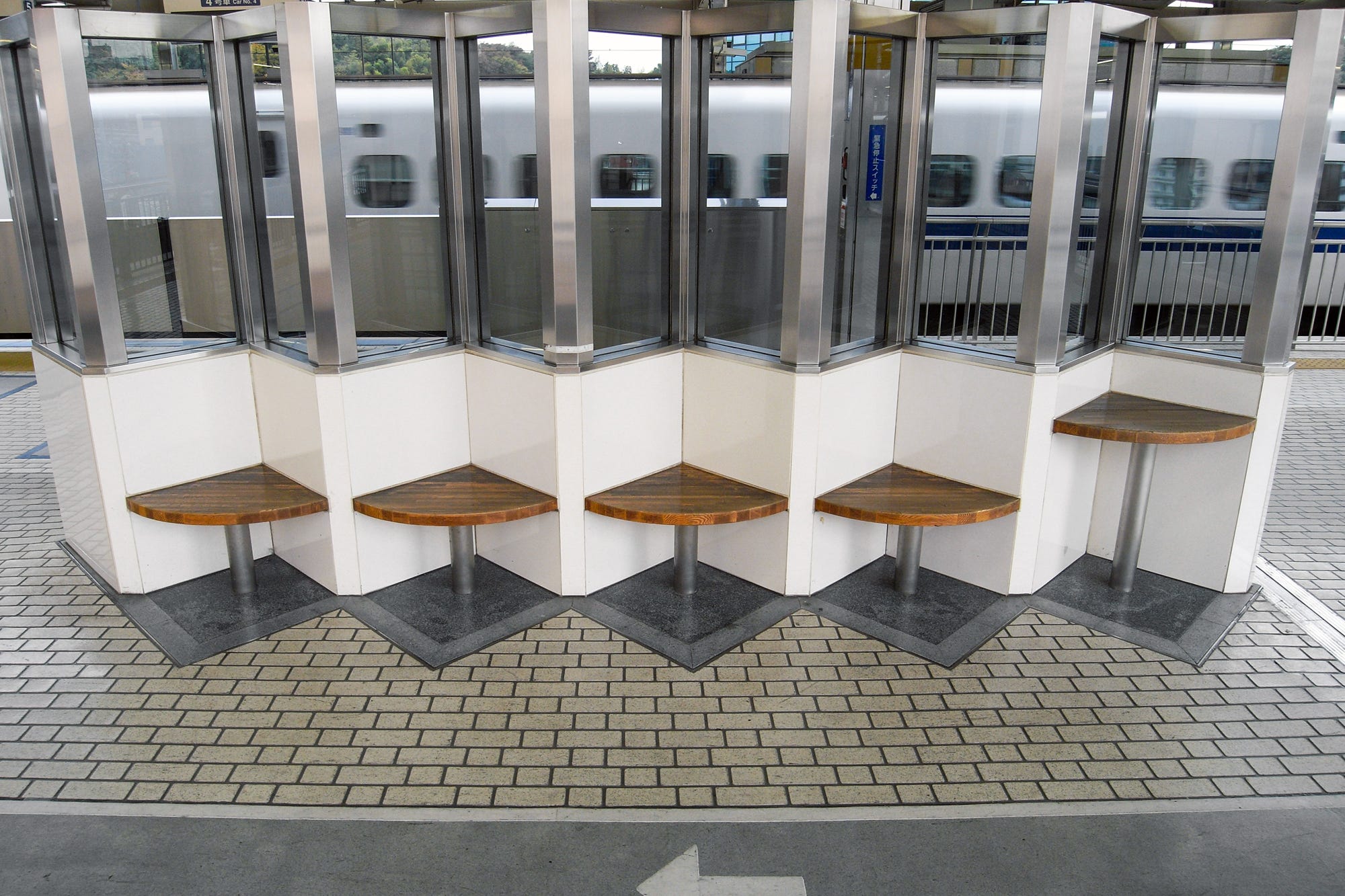 Previously there was no fence between the platform and the train, but now there is an automatic opening and closing fence. What you see in these photos is a simple fence set up during that transitional period.