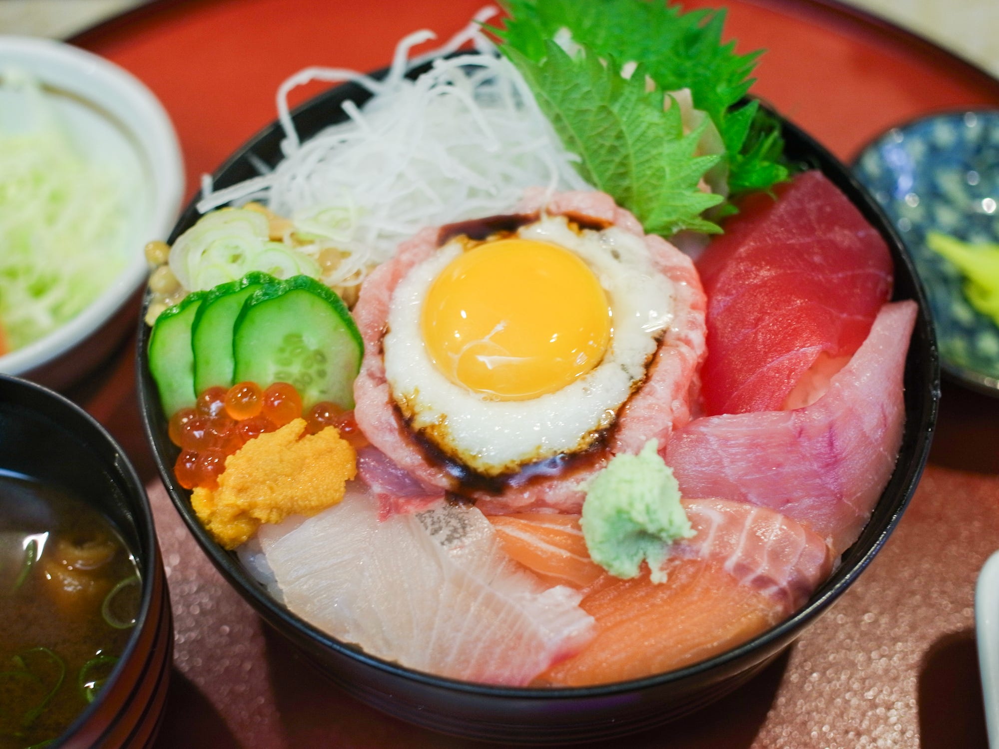 The Japanese word for a bowl of tableware is “Donburi”. And Donburi is often abbreviated to “Don”. If you see “Don” at the end of a Japanese dish name, it means food served in a bowl. (For example: Katsu-Don, Oyako-Don, Ten-Don, Gyu-Don, Kaisen-Don, Una-Don)