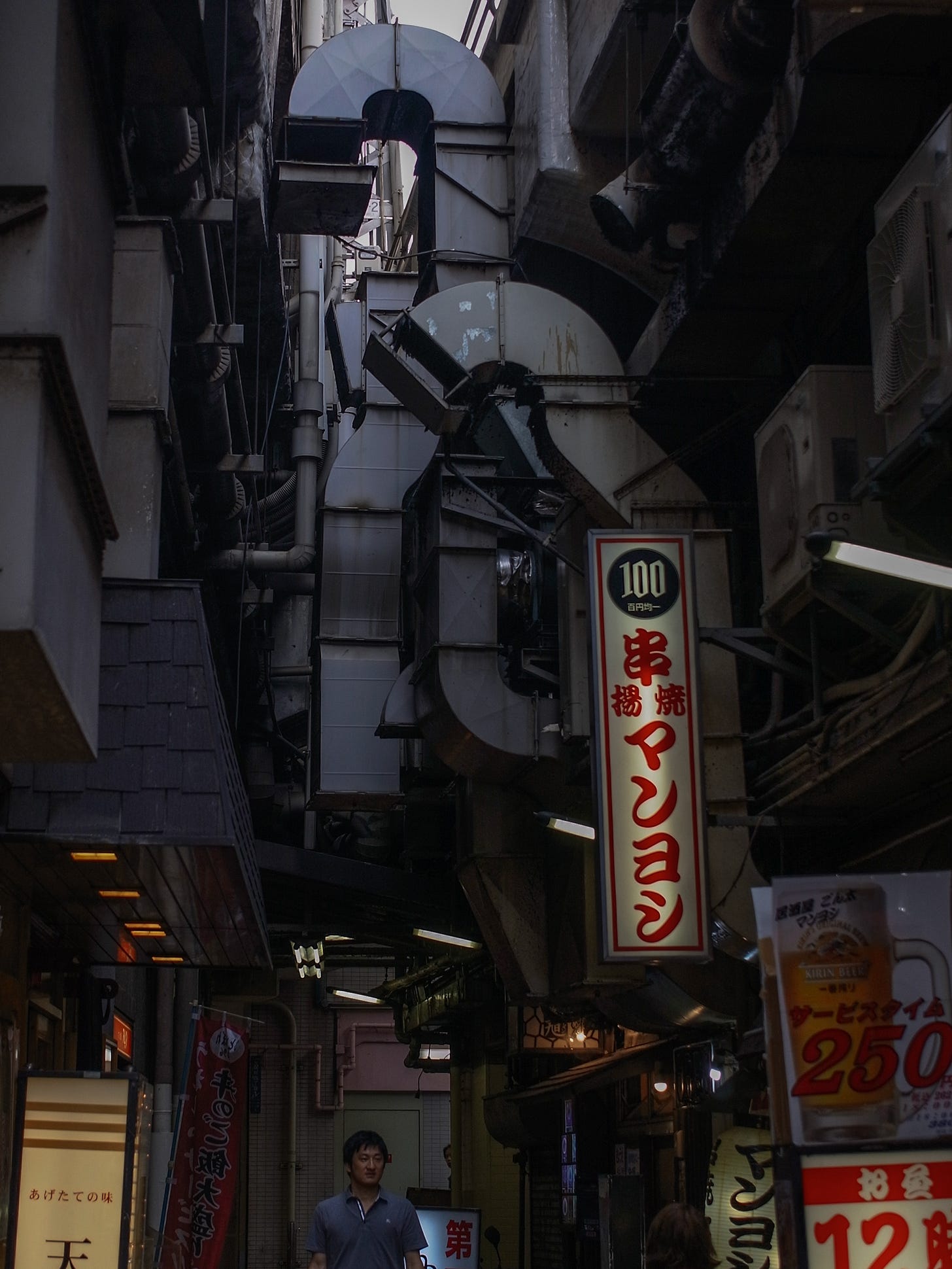 I love those back streets near Sannomiya — the back ends of everything, the air conditioning pipes — like a utilitarian Pompidou Centre.