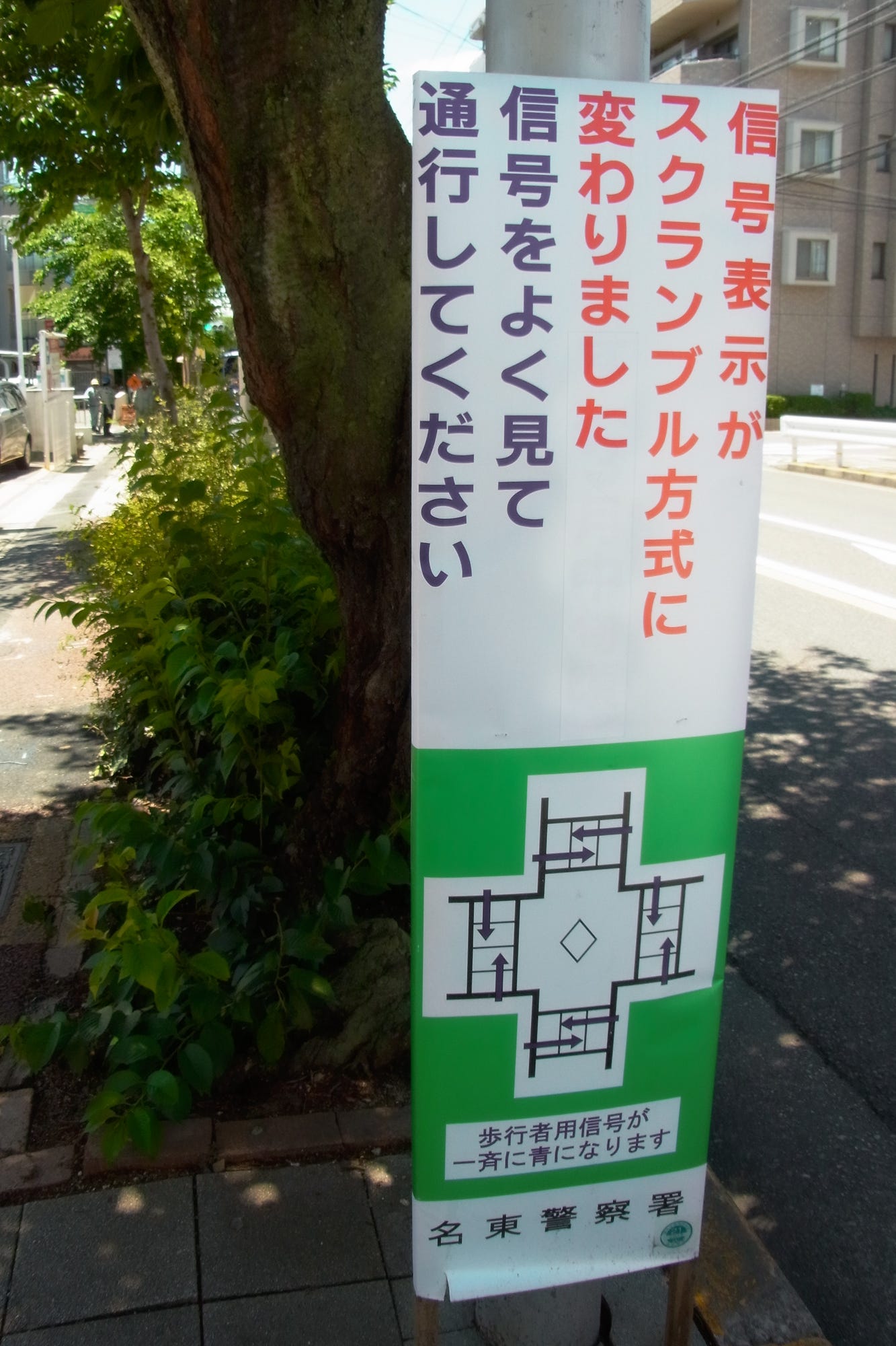 This intersection has been changed to a scramble system.