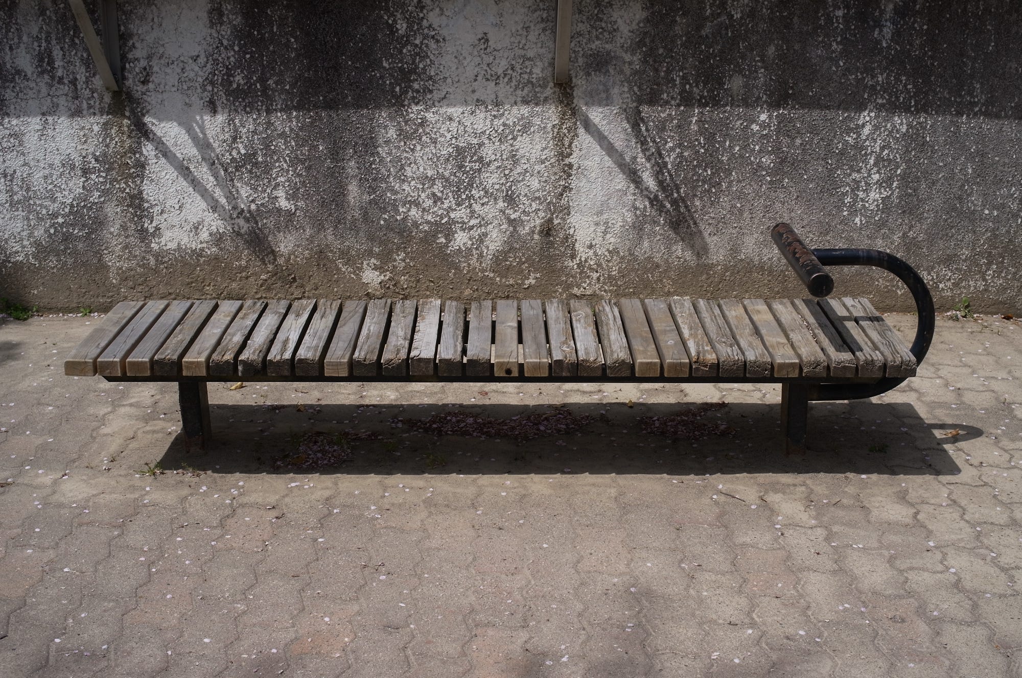 The "anti-homeless" design of the last bench is depressing to me. Especially as the bench just before it is just as useful and more welcoming. It seems to me that in our modern world we should be able to house people if not allow them moments or places to rest.
