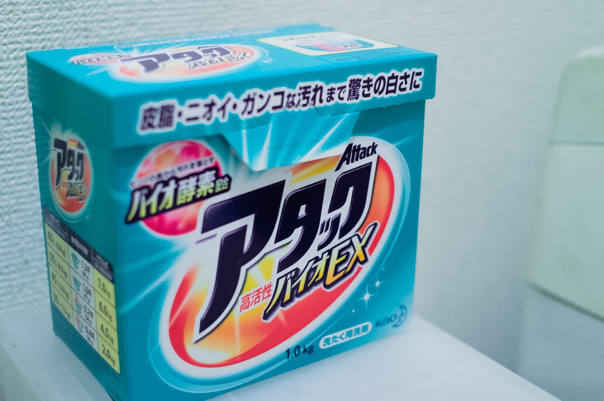 The clever design on the washing powder makes it look like a superhero!