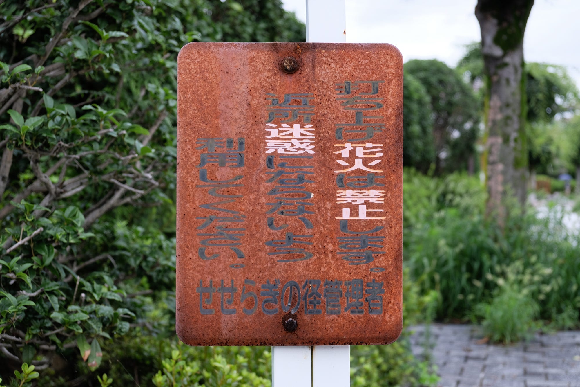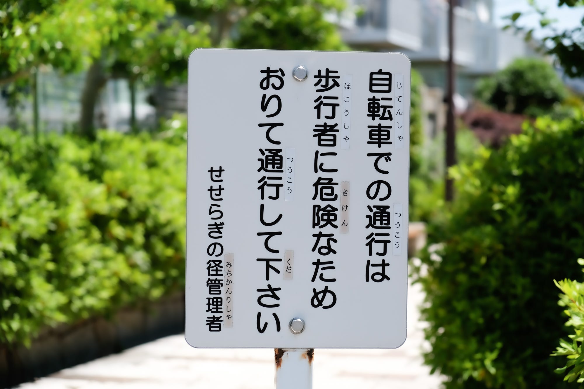 Riding bicycles is dangerous to pedestrians, so please dismount and walk.