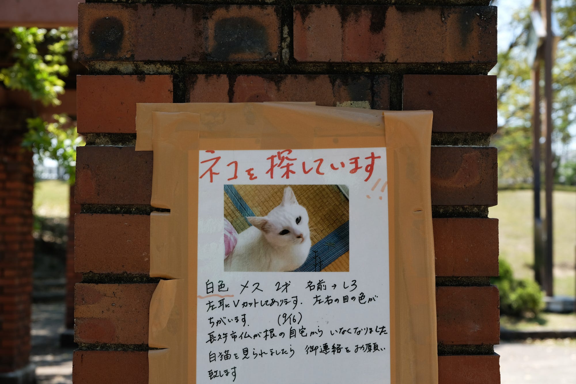 If you see a white cat, please contact me.