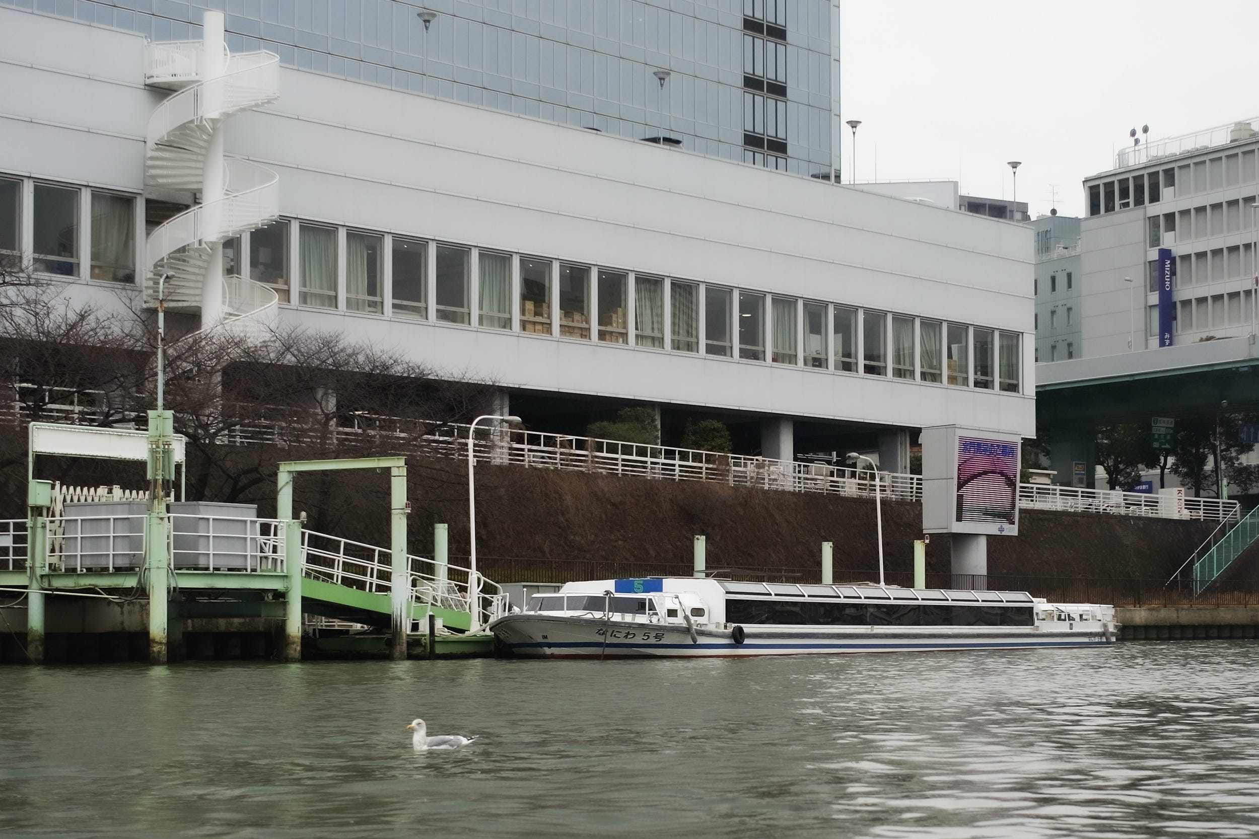 Aqualiner is a sightseeing boat that operates on the Okawa River that runs through the center of Osaka City.