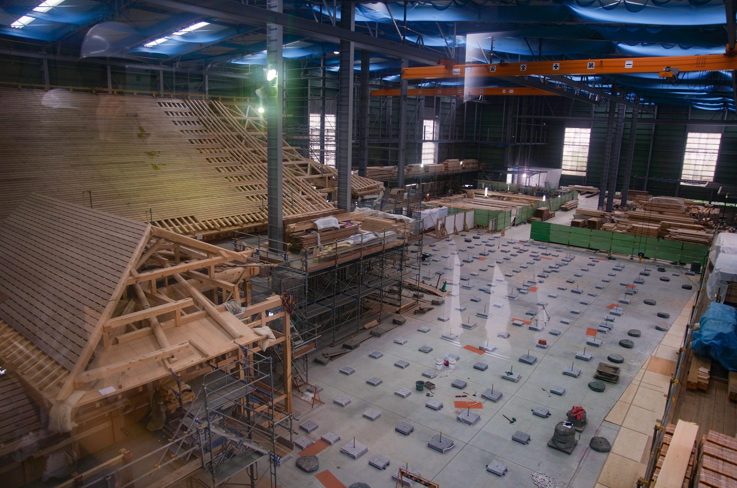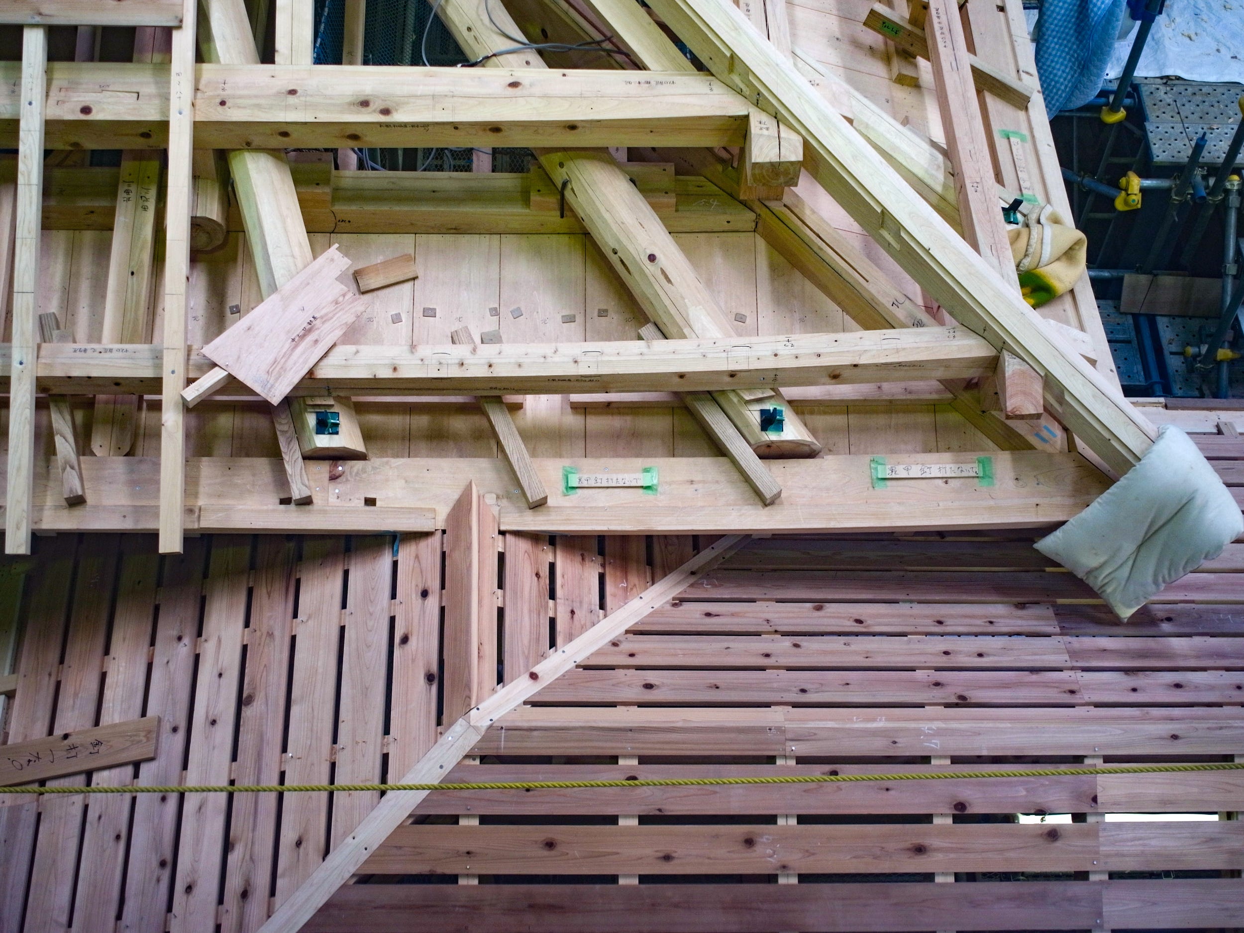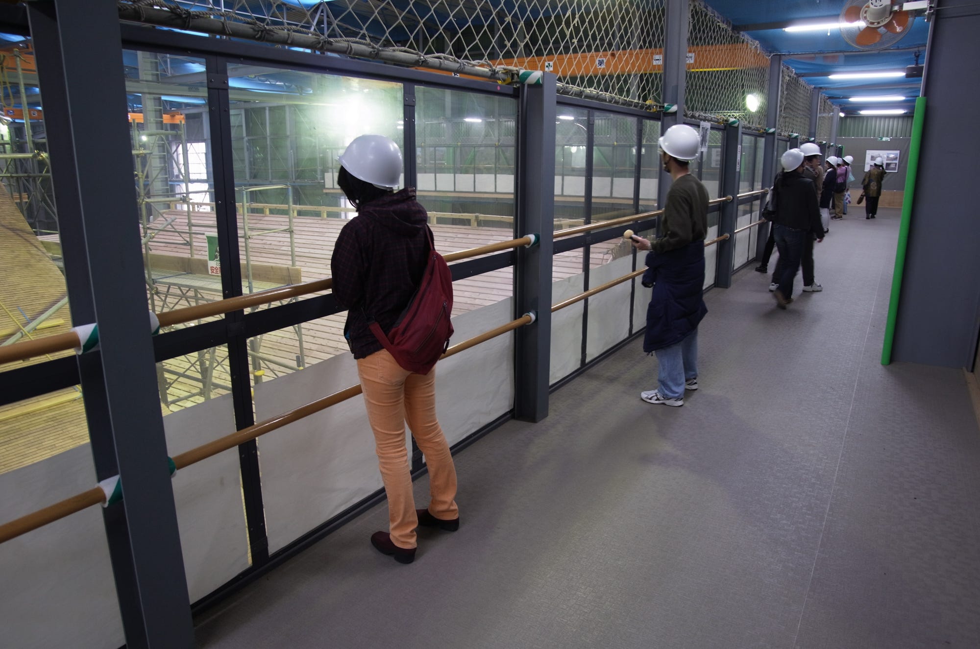 The construction helmets hanging on a wall is classic. This replica is very impressive on both the inside and outside. Do you have any shots of the vast tatami rooms with their golden decorations?