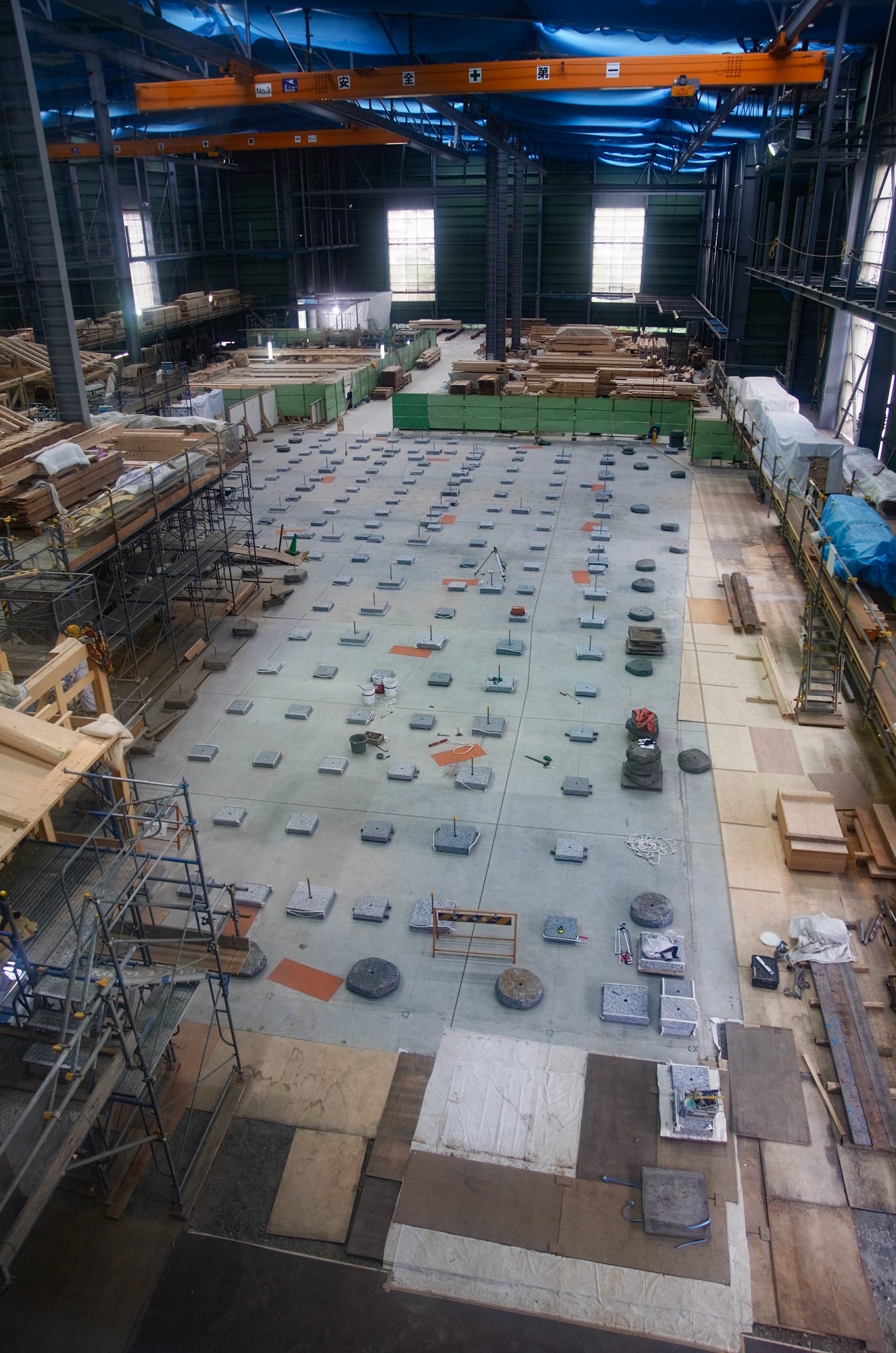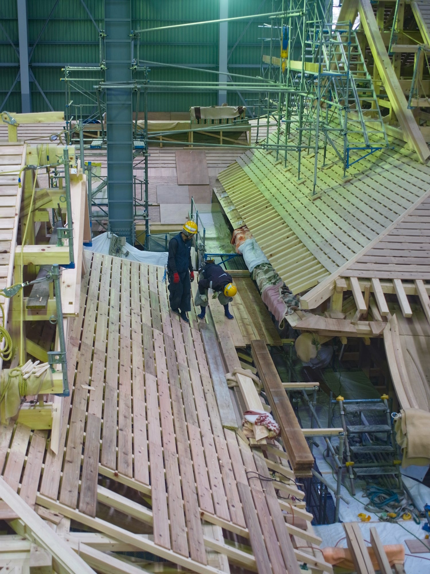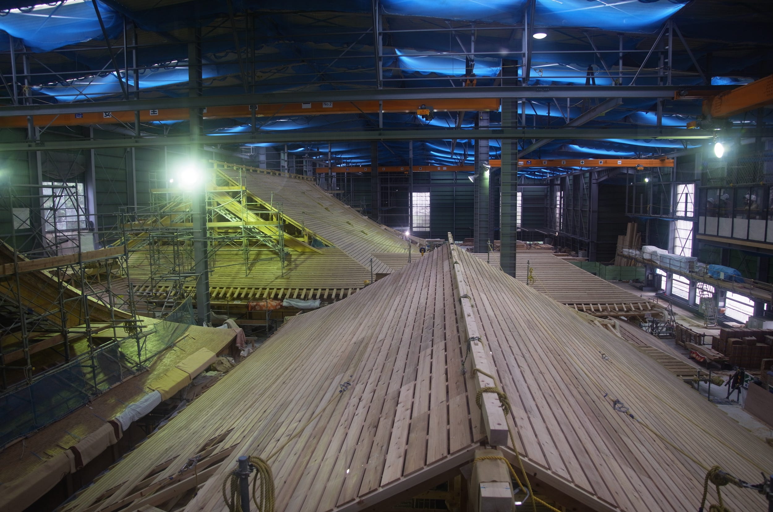The construction helmets hanging on a wall is classic. This replica is very impressive on both the inside and outside. Do you have any shots of the vast tatami rooms with their golden decorations?